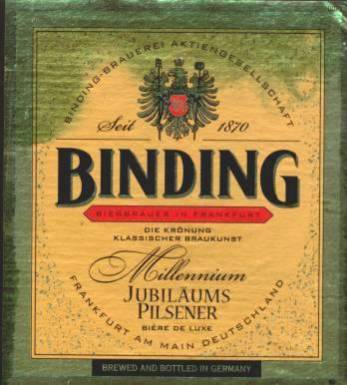 | BINDING MILLENNIUM | BRAUEREI BINDING FRANKFURT | PILSENER | 5.0 | 0.500 |
