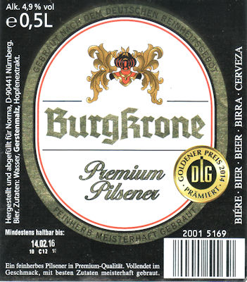 | BURGKRONE PREMIUM PILS | FELDSCHLOSSCHEN DRESDEN | PILSENER | 4.9 | 0.500 |