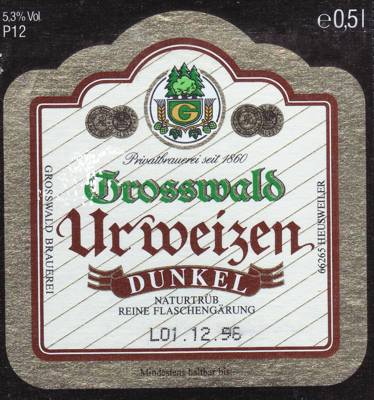 | GROSSWALD URWEIZEN DUNKEL | GROSSWALD BRAU HEUSWEILER | TARWEBIER | 5.3 | 0.500 |