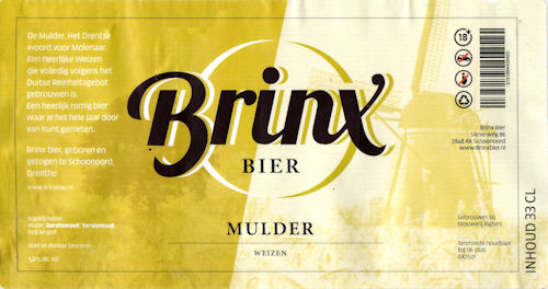 | MULDER WEIZEN | BRINX BIER SCHOONOORD | TARWEBIER | 5.6 | 0.330 |