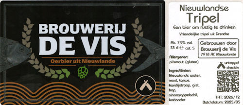 | NIEUWLANDSE TRIPEL | DE VIS NIEUWLANDE | TRIPEL | 7.9 | 0.330 |